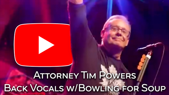 On a personal note, Tim has represented numerous entertainment personalities on various matters - not related to criminal cases - and has appeared on stage or in the studio with many groups, including Matchbox 20, Bowling for Soup, Dash Rip Rock, Jackson Browne, and Jelly Roll, among others. The group People on Vacation dedicated their third CD release to Tim, and it was titled The Chronicles of Tim Powers.